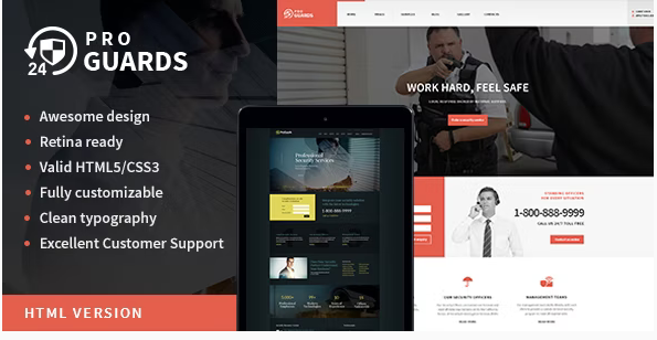 ProGuards | Safety & Security Site Template is developed by Themeforest (Known and Good Developer)